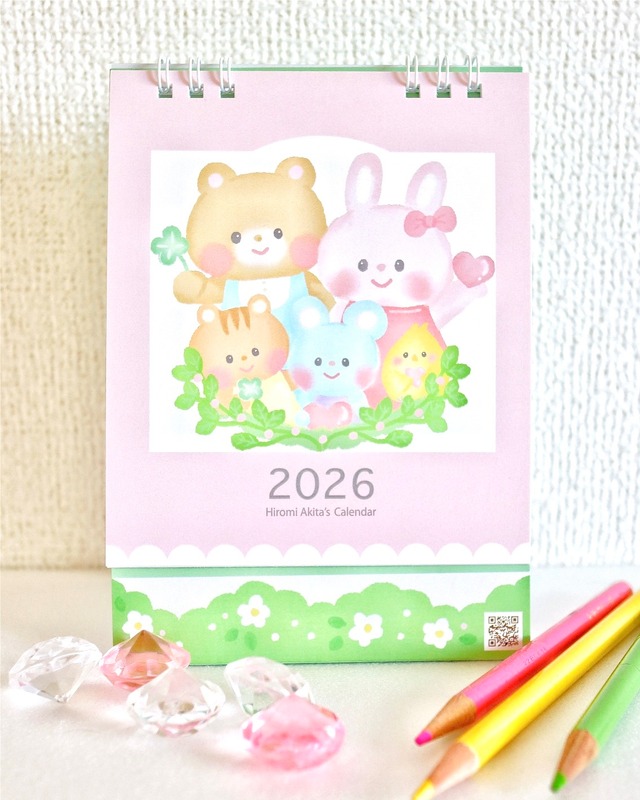 イラストレーター・アキタヒロミ 2026年 オリジナルイラストカレンダー 1 枚めくるたびに、季節の色や風を感じ、 心がほっと , あたたかくなるような カレンダーを目指しました。 1 年を通して、あなたの毎日にやさしく 寄り添えたら嬉しいです。 ‥‥‥‥‥‥ サイズ : 台紙(展開サイズ:400x115mm)・本文(115x135mm) ページ数 : 7 用紙 : ホワイトアートポスト220